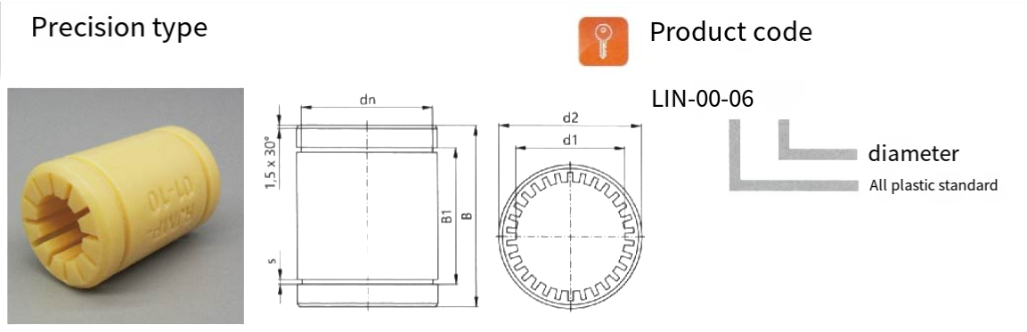 ออกแบบมาเพื่อการประกอบที่มีความแม่นยำสูง แบริ่งความแม่นยำ HZ-LIN มีคุณสมบัติความคลาดเคลื่อนมิติต่ำเป็นพิเศษ (± 0.02 มม.) และผิวเจาะที่เรียบ การดูดซับความชื้นต่ำ (<0.5%) ช่วยให้มั่นใจได้ถึงความเสถียรในสภาพแวดล้อมที่มีการควบคุมความชื้น เช่น อุปกรณ์ทางการแพทย์ อุปกรณ์เกี่ยวกับการมองเห็น หรือหุ่นยนต์